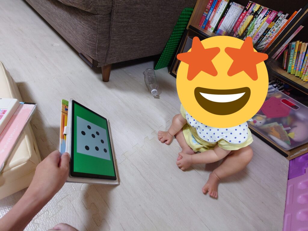 今のところ、「やる?」と聞くと大喜びで駆け寄ってきて、音や色の変化に反応してじっと見てくれることが多く、
